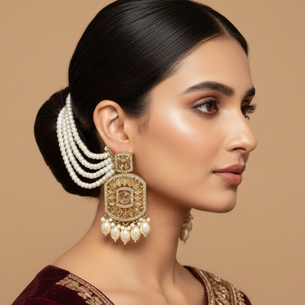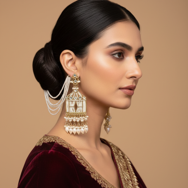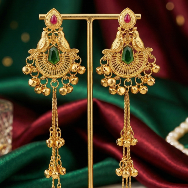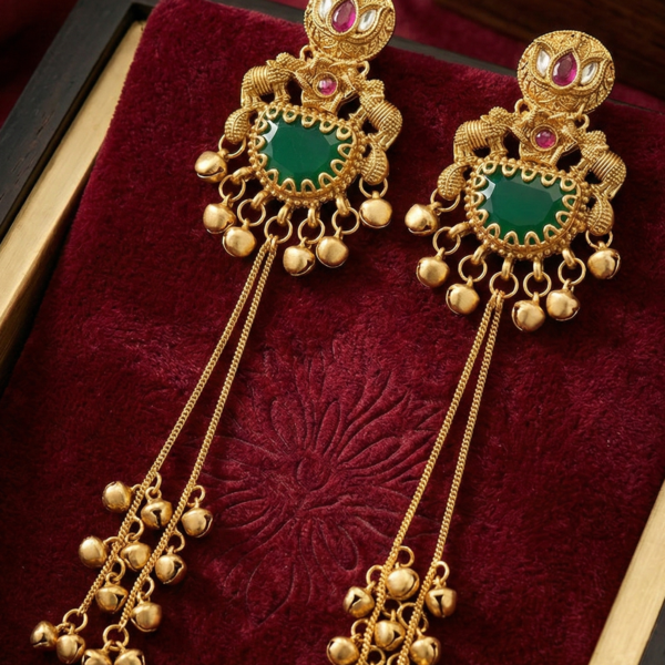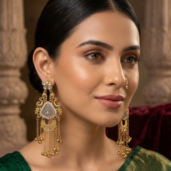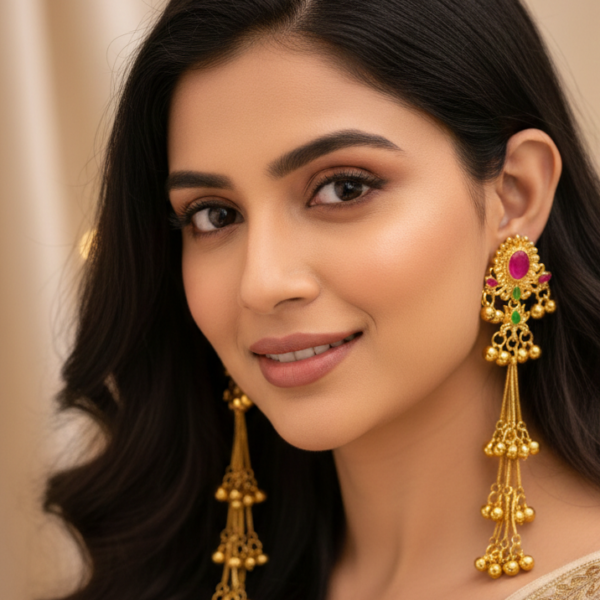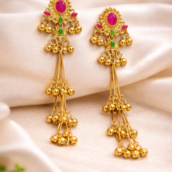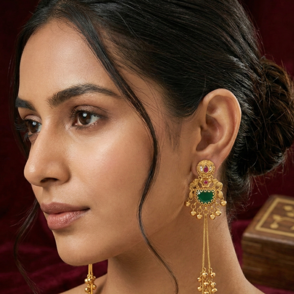 Heritage Kashmiri Earrings with Golden Bead Cascades