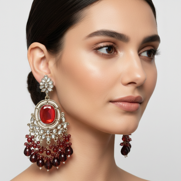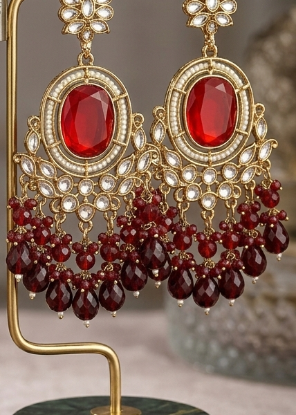 Regal Crimson Oval Statement Chandelier Earrings