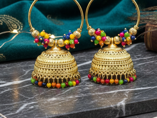 • Design: Traditional jhumka with a geometric mosaic pattern.