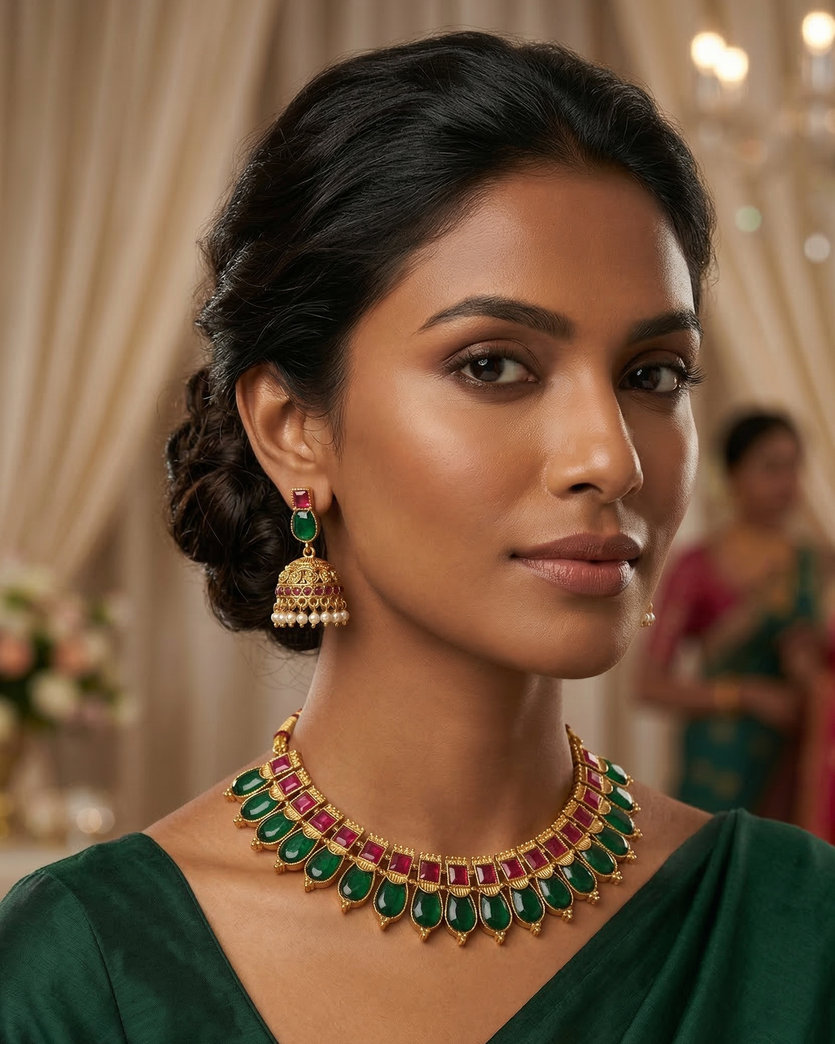 Be the first to review “Classic Gold-Plated Emerald & Ruby Jewellery Set”