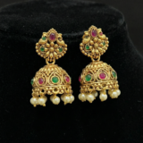 Be the first to review “Exquisite Antique Temple Jewellry Set – Dual Layer Necklace with Jhumkas & Pearl Accents”