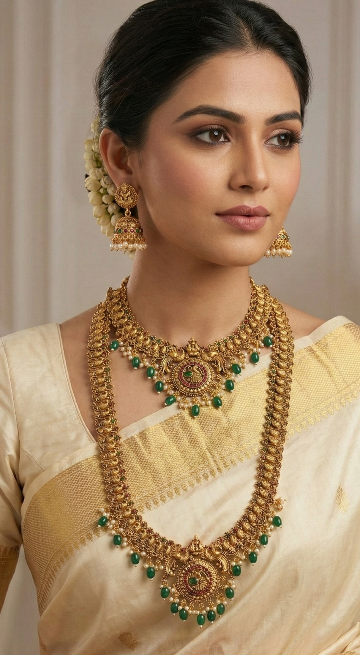 • Styling Tip: Pair with a Kanjeevaram or silk saree to complete the majestic look.
