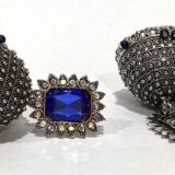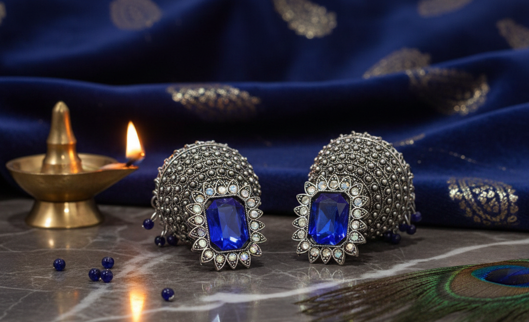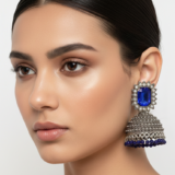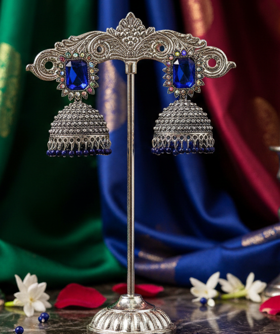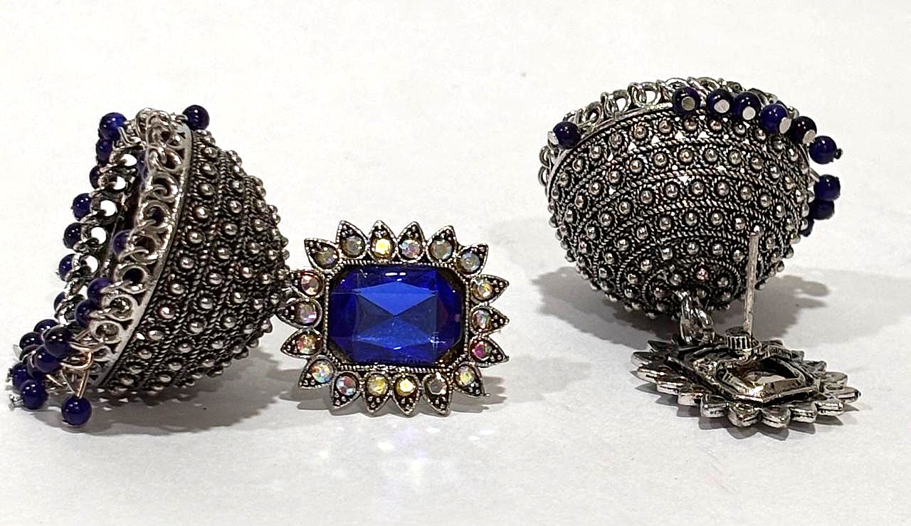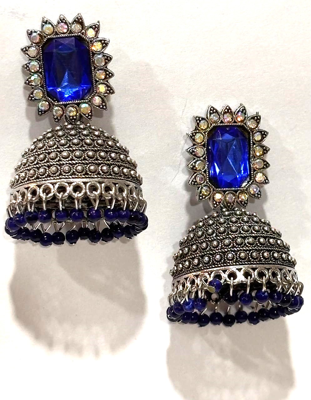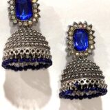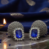 Be the first to review “Oxidized Silver Royal Blue Stone Statement Jhumkas”
