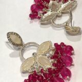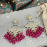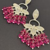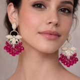 The highlight of these earrings is the luxurious cascade of vibrant pink crystal drops that create graceful movement and sparkle with every turn. The rich color combination makes these earrings perfect for wedding functions, festive celebrations, parties, and traditional occasions.