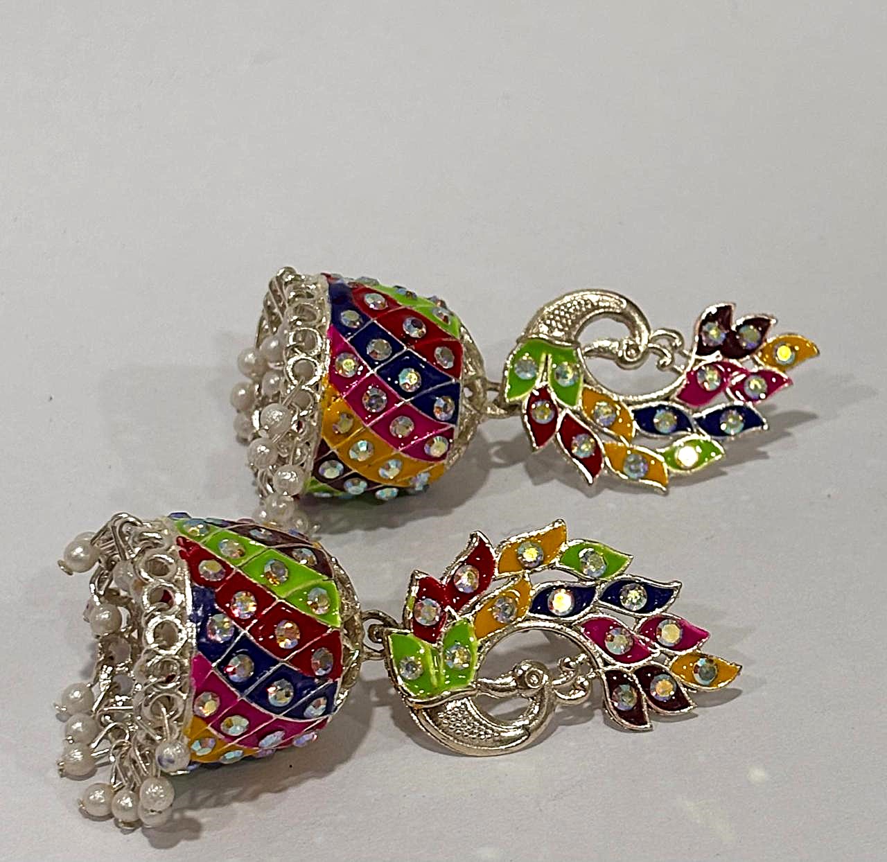 Be the first to review “Rainbow Peacock Enamel Jhumka Earrings”