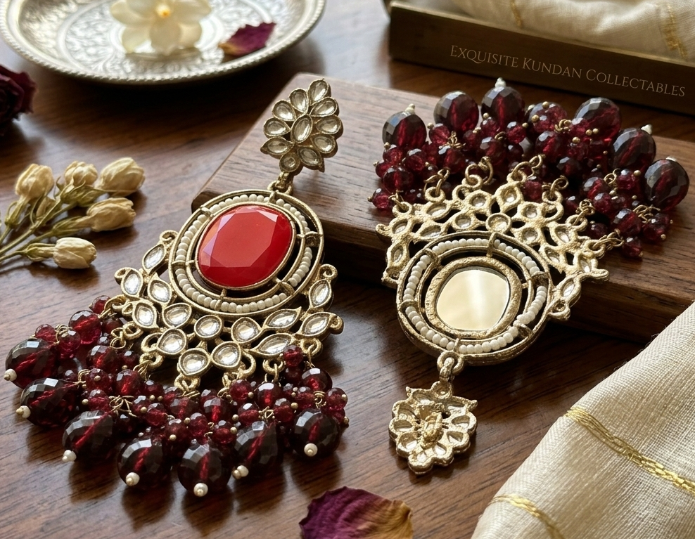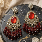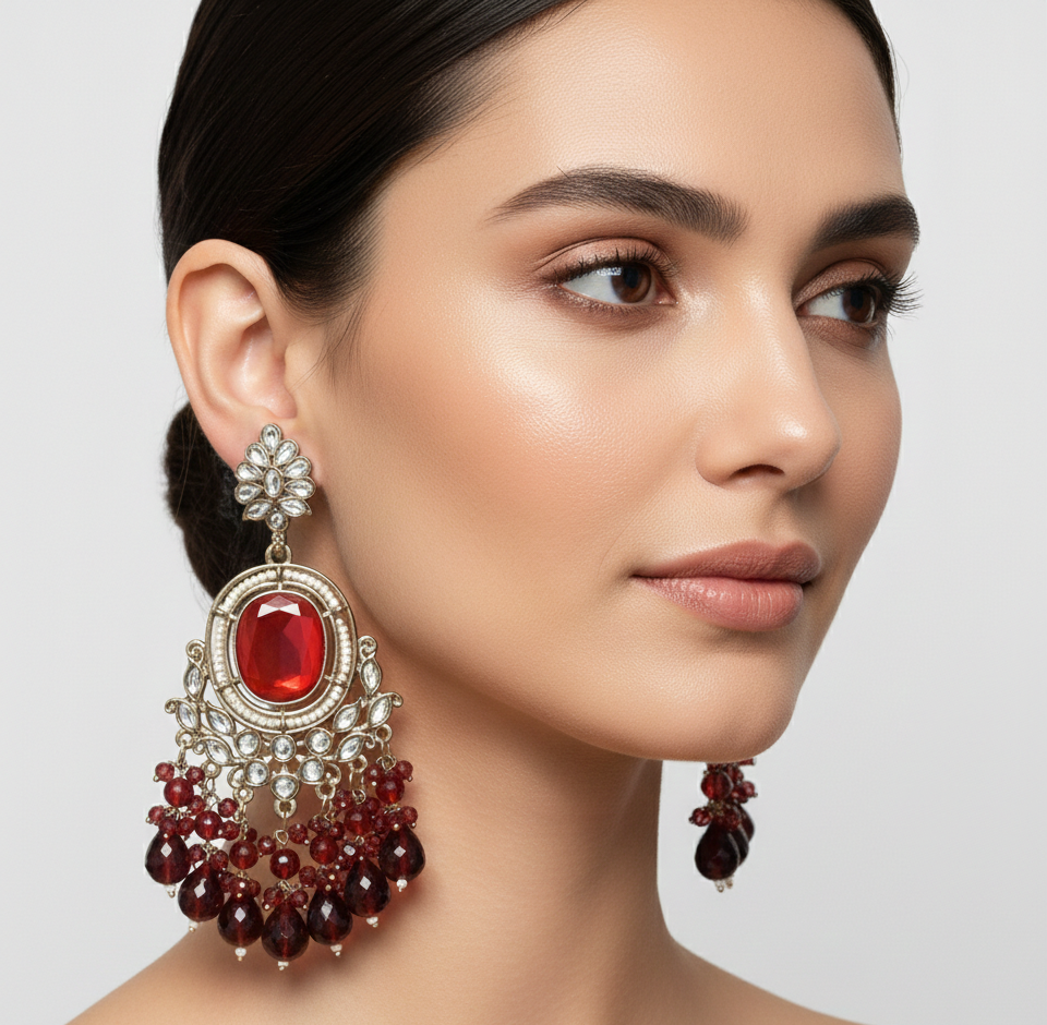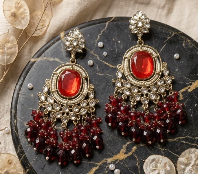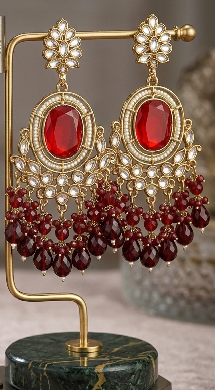 Be the first to review “Regal Crimson Oval Statement Chandelier Earrings”