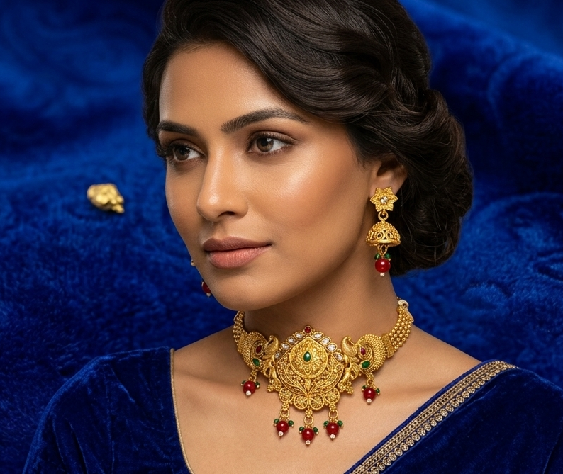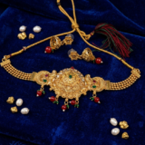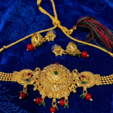 Be the first to review “Regal Peacock Gold Choker Set with Ruby-Emerald Drops”