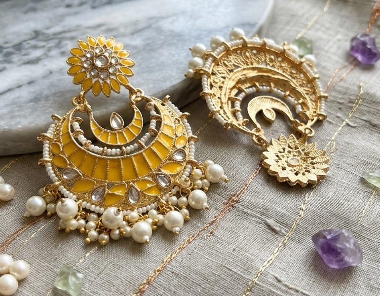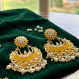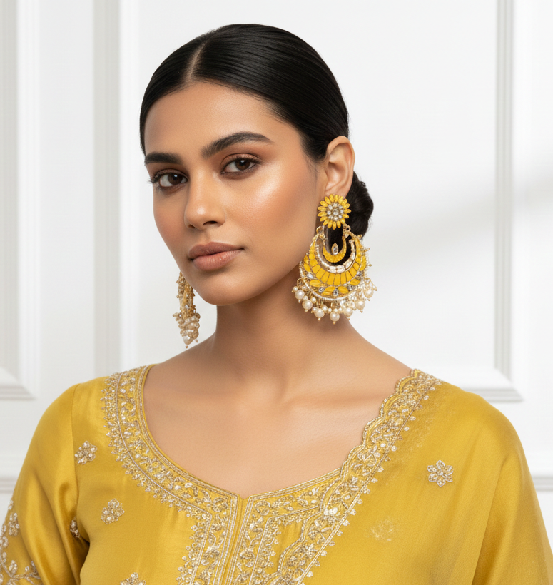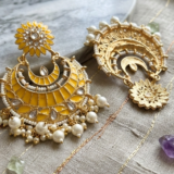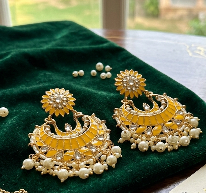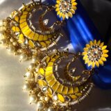Be the first to review “Sunshine Yellow Floral Chandbali Earrings with Pearl Accents”