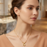 The “Solar Amulet” is our answer to high-maintenance jewelry. This timeless yet modern piece features a detailed vine and leaf-inspired design (seen in image) with a trio of brilliant-cut lavender stones and sparkling marquise-cut green gems (Note: The user image only has the central amber stone; I should adjust this part to match the user image, removing the lavender and green parts unless they are on a different view). Correction: This timeless yet modern piece features a brilliant, chatoyant Solar Tiger’s Eye that captures the light. The vibrant amber stone is framed by two elegant, gold-plated barrel beads on a delicate box chain. Our anti-tarnish gold plating ensures this necklace retains its spectacular sheen, resisting the dulling effects of air and skin contact. Perfect for adding effortless brilliance to any look, day after day.