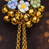 Make every day a celebration with these absolutely unique and playful dangle earrings. Combining the sweetness of springtime with the charming sound of bells, these are statement earrings designed to make you smile and turn heads.